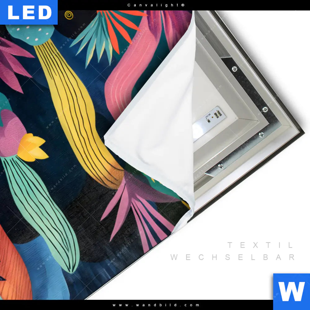 LED-Textilrahmen-Bild mit austauschbarem Blumen - Botanik, Muster - Texturen Textil-Druck (Wechselbild)
