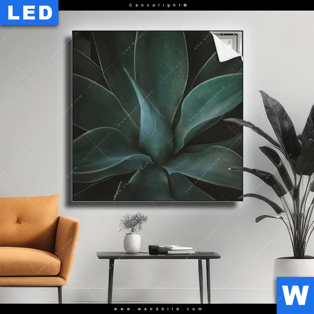 Canvalight® Leuchtbild | Dunkles Agavenblatt | Quadrat