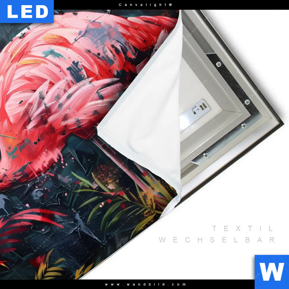 Canvalight® TEX Leuchtbild | Flamingo - Dschungel Eleganz | Querformat