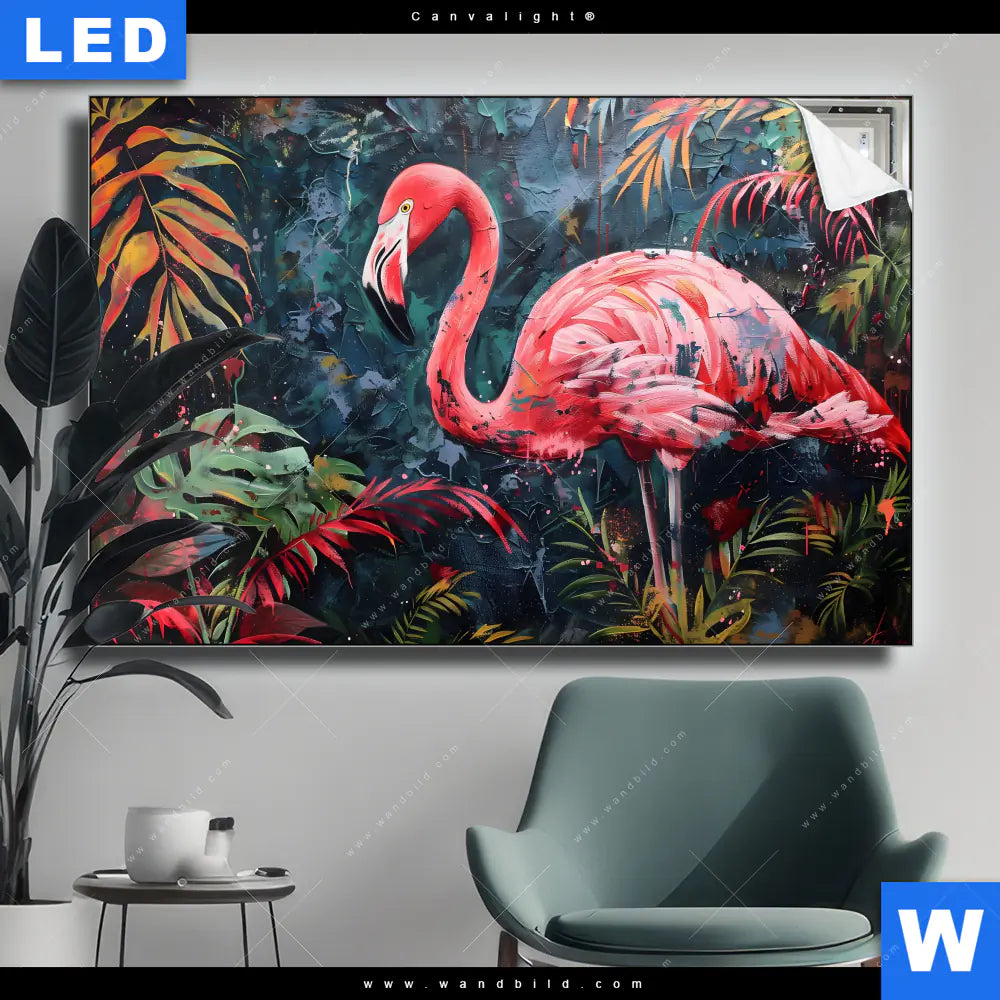 Canvalight® Leuchtbild | Flamingo - Dschungel Eleganz | Querformat
