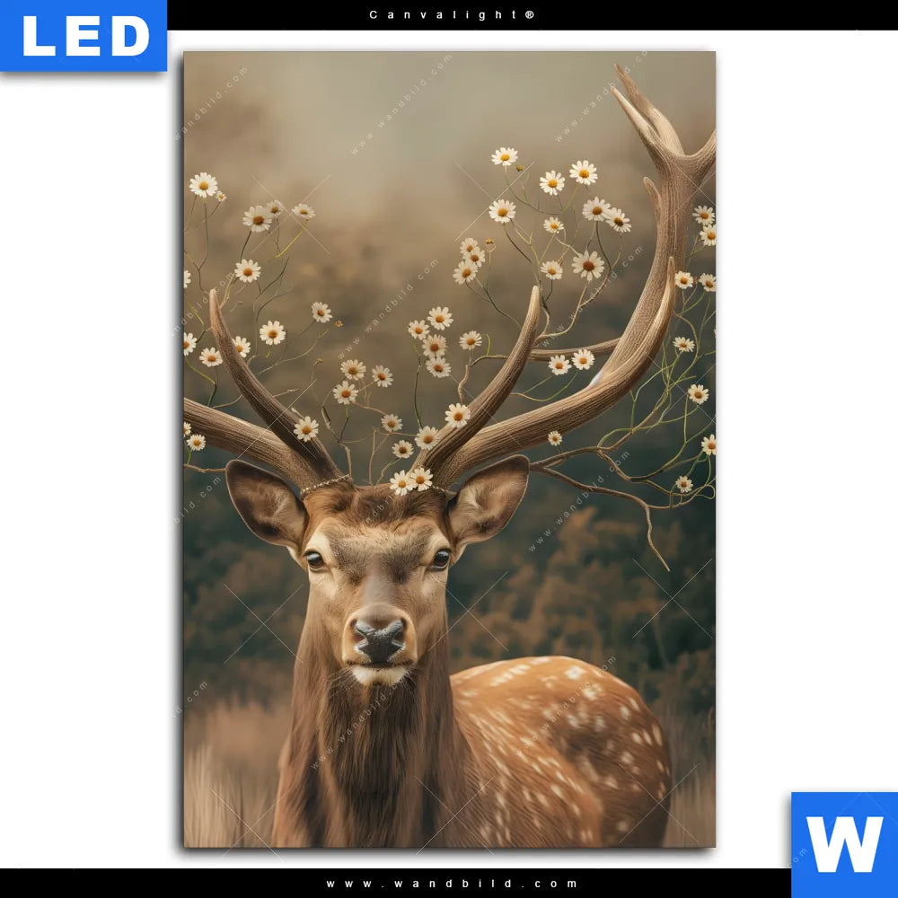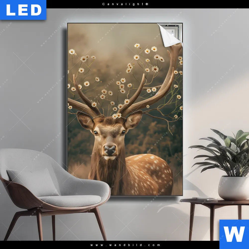 Canvalight® TEX Leuchtbild | Magischer Hirsch im Waldrand | Hochformat