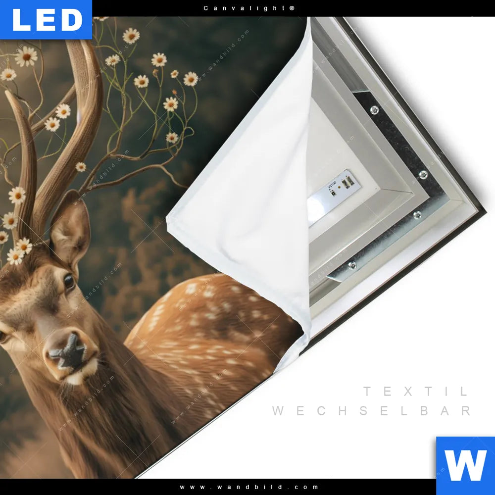 Canvalight® TEX Leuchtbild | Magischer Hirsch im Waldrand | Querformat