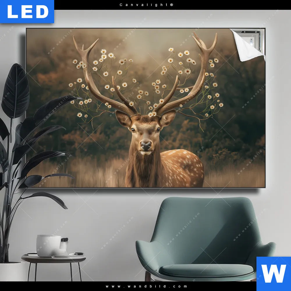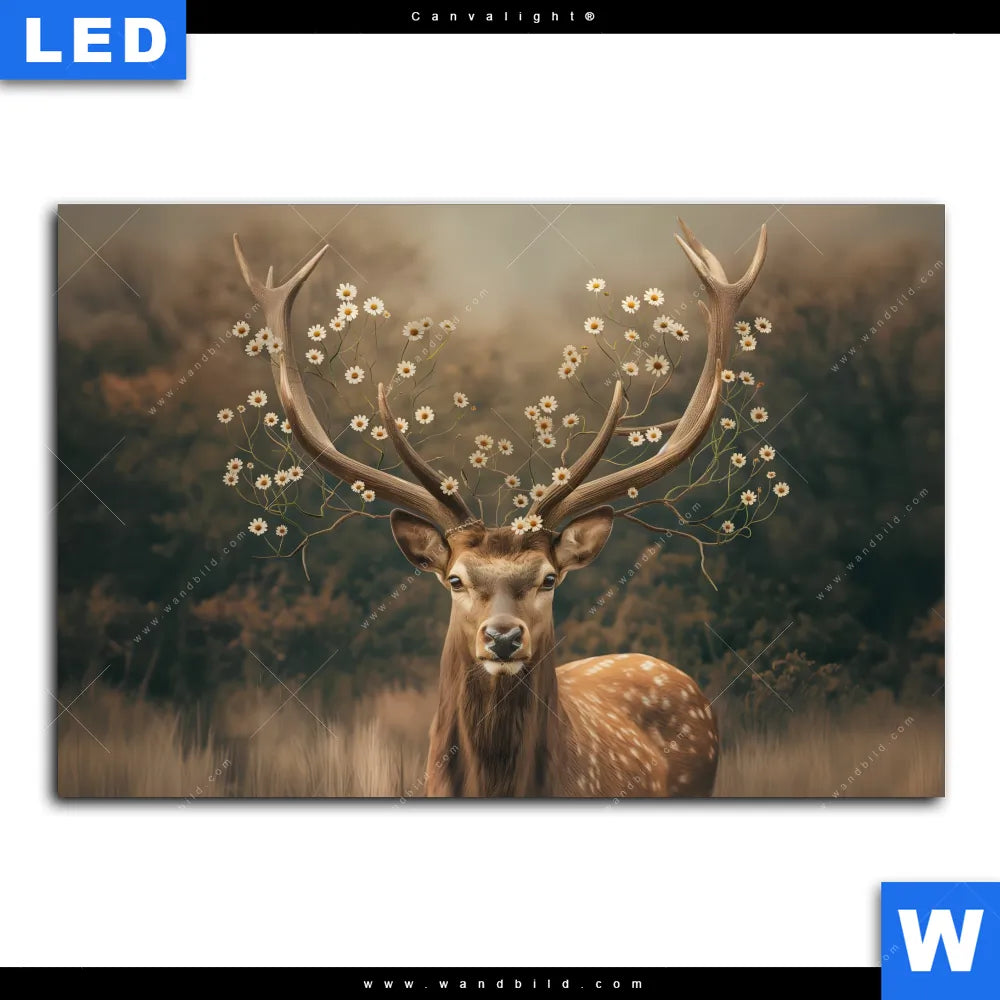 Canvalight® Leuchtbild | Magischer Hirsch im Waldrand | Querformat