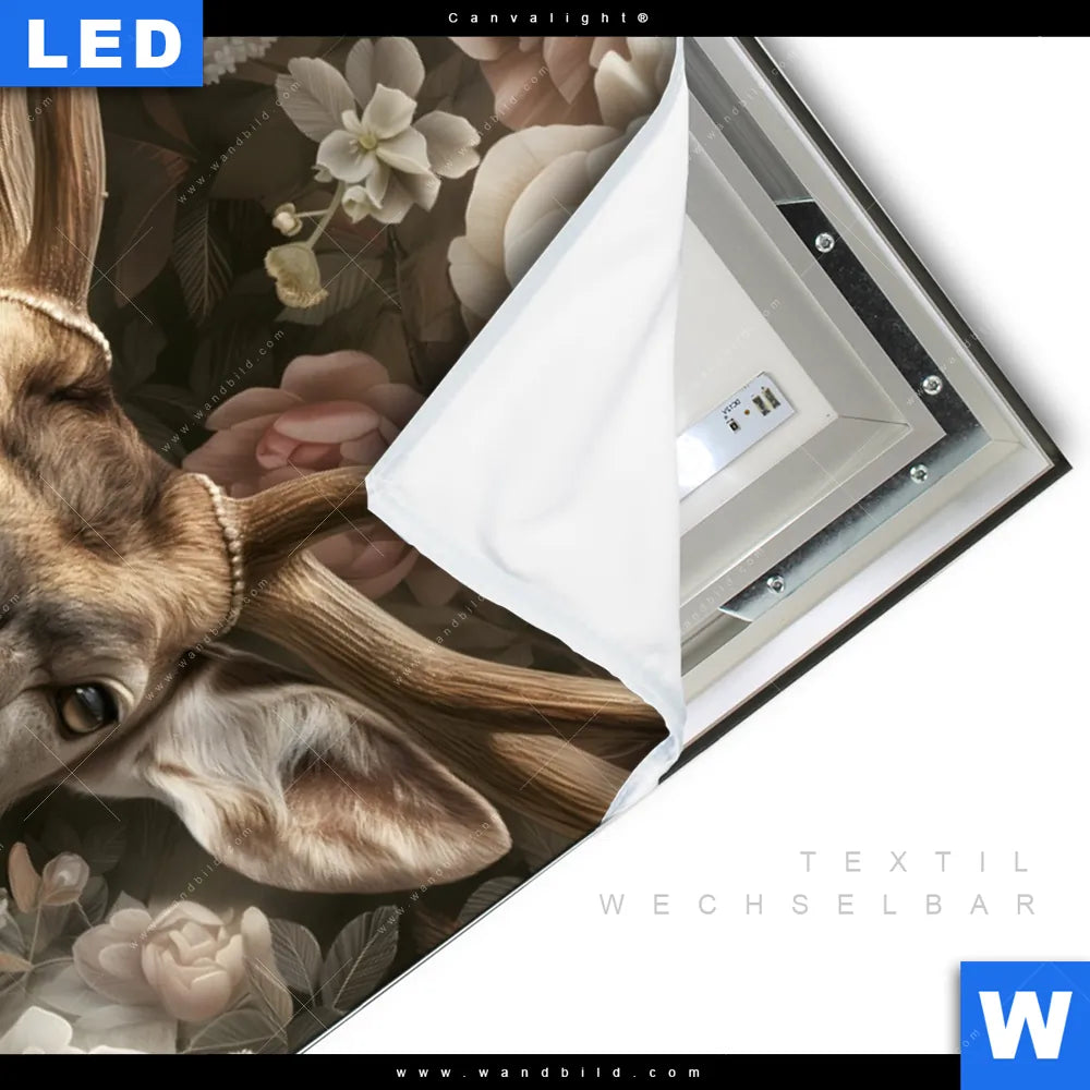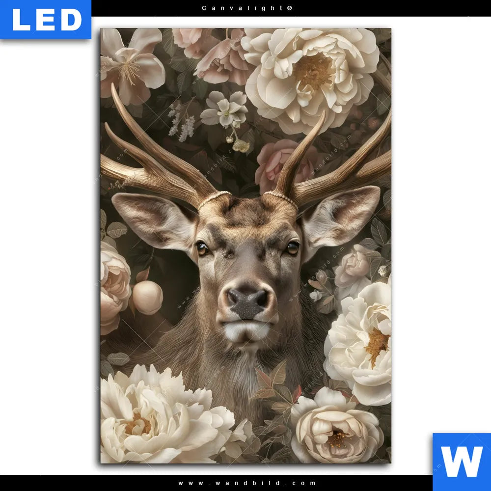 Canvalight® TEX Leuchtbild | Romantischer Hirsch mit Blumen | Hochformat
