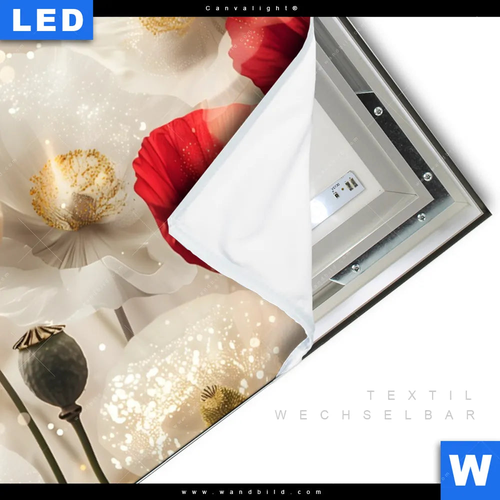 Canvalight® TEX Leuchtbild | Rote und weiße Mohnblumen | Querformat
