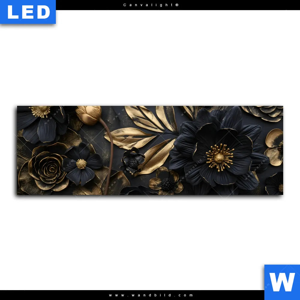 Canvalight® Leuchtbild | Schwarze und goldene Blüten | Panorama