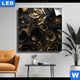 Canvalight® TEX Leuchtbild | Schwarze und goldene Blüten | Panorama