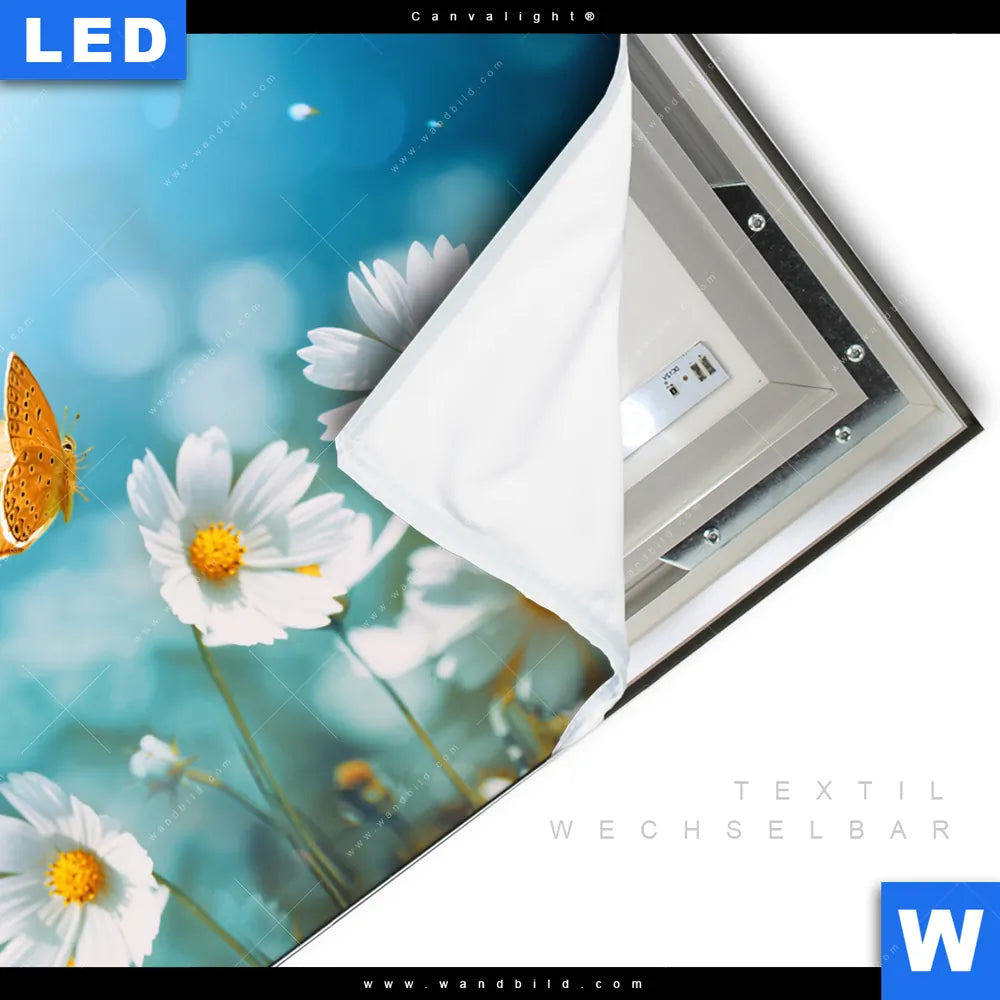 LED-Textilrahmen-Bild mit austauschbarem Landschaften, Blumen - Botanik Textil-Druck (Wechselbild)