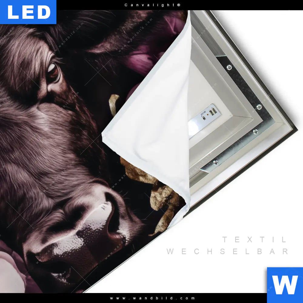 Canvalight® TEX Leuchtbild | Stier mit Blumen | Querformat