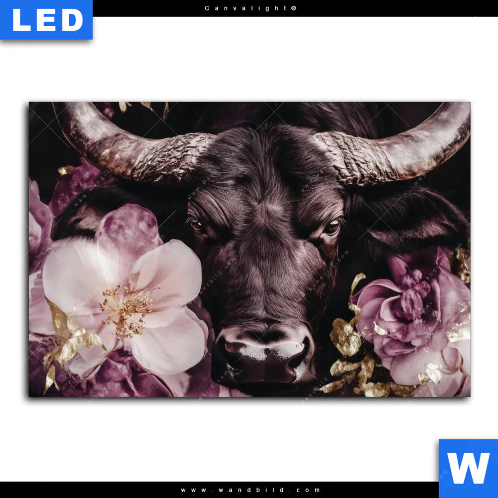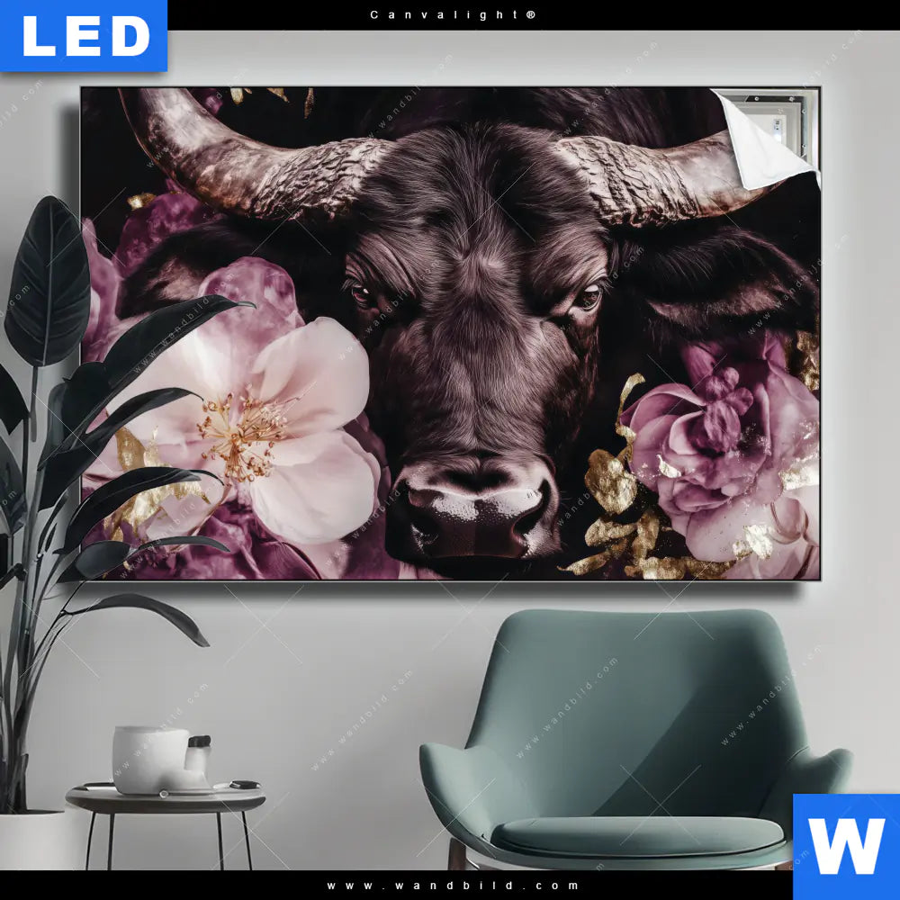 Canvalight® Leuchtbild | Stier mit Blumen | Querformat