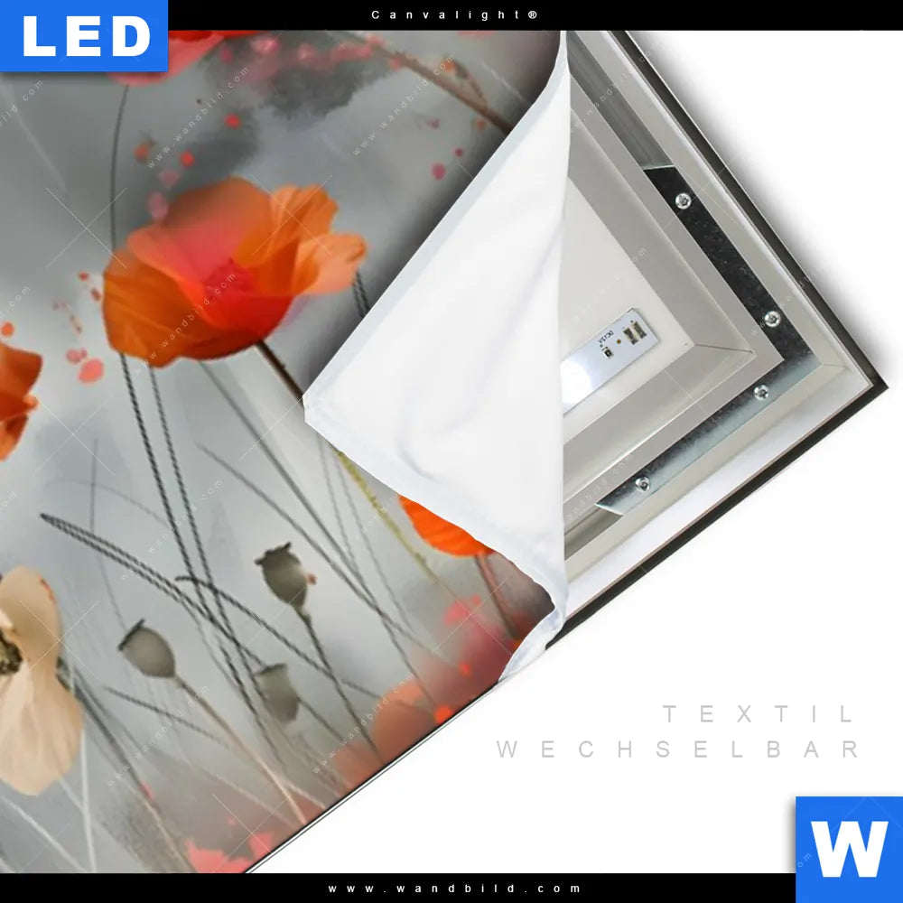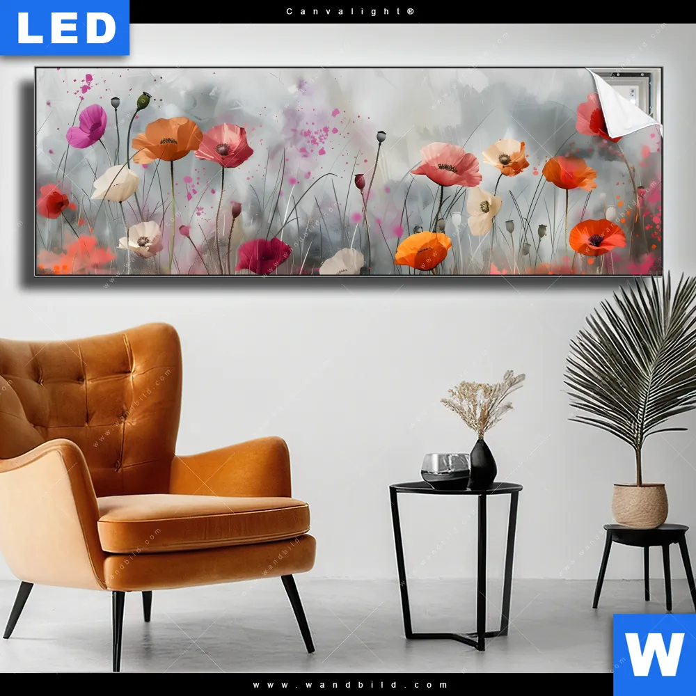 Canvalight® TEX Leuchtbild | Zarte Mohnblumen im Wind | Panorama