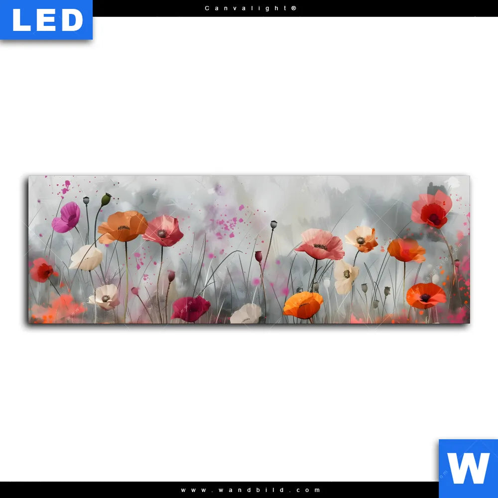 Canvalight® Leuchtbild | Zarte Mohnblumen im Wind | Panorama