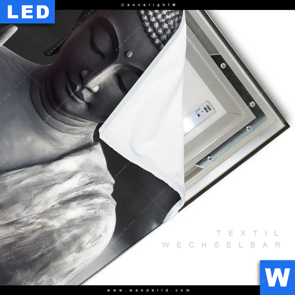 LED-Textilrahmen-Bild mit austauschbarem Buddha - Feng Shui Textil-Druck (Wechselbild)