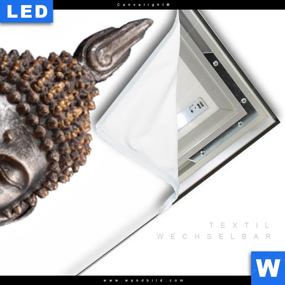 LED-Textilrahmen-Bild mit austauschbarem Buddha - Feng Shui Textil-Druck (Wechselbild)
