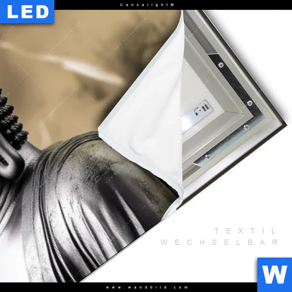 LED-Textilrahmen-Bild mit austauschbarem Buddha - Feng Shui Textil-Druck (Wechselbild)