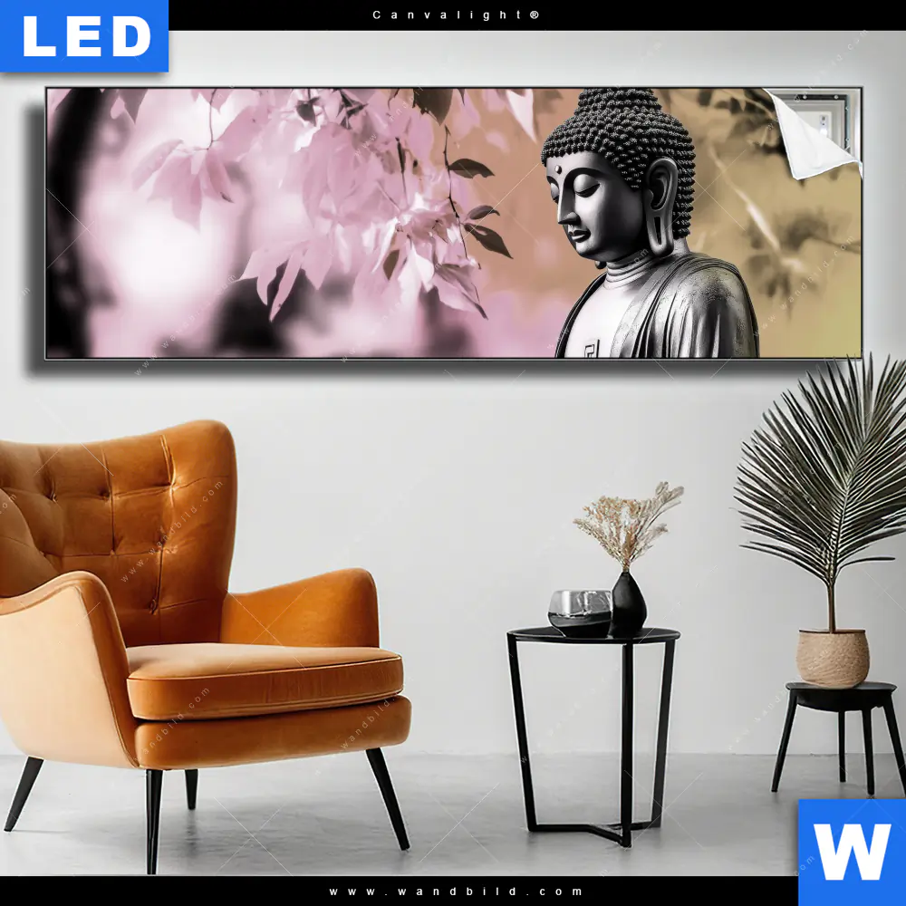 Canvalight® TEX Leuchtbild | Buddha in stiller Harmonie | Panorama
