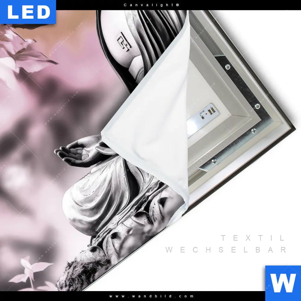 LED-Textilrahmen-Bild mit austauschbarem Buddha - Feng Shui Textil-Druck (Wechselbild)