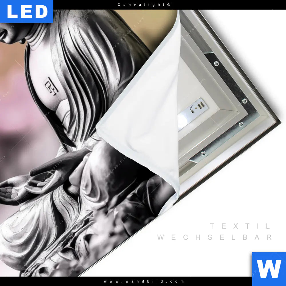 LED-Textilrahmen-Bild mit austauschbarem Buddha - Feng Shui Textil-Druck (Wechselbild)