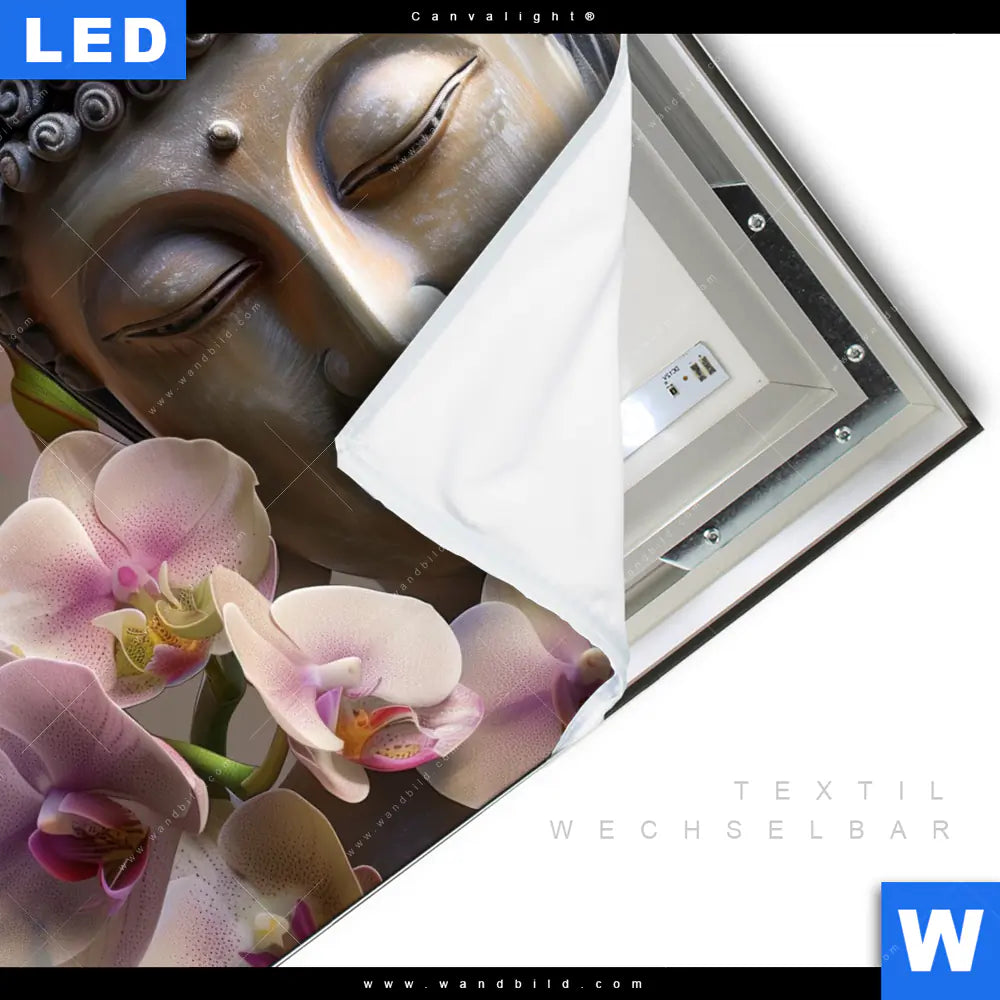 Canvalight® TEX Leuchtbild | Buddha & Orchideen | Quadrat