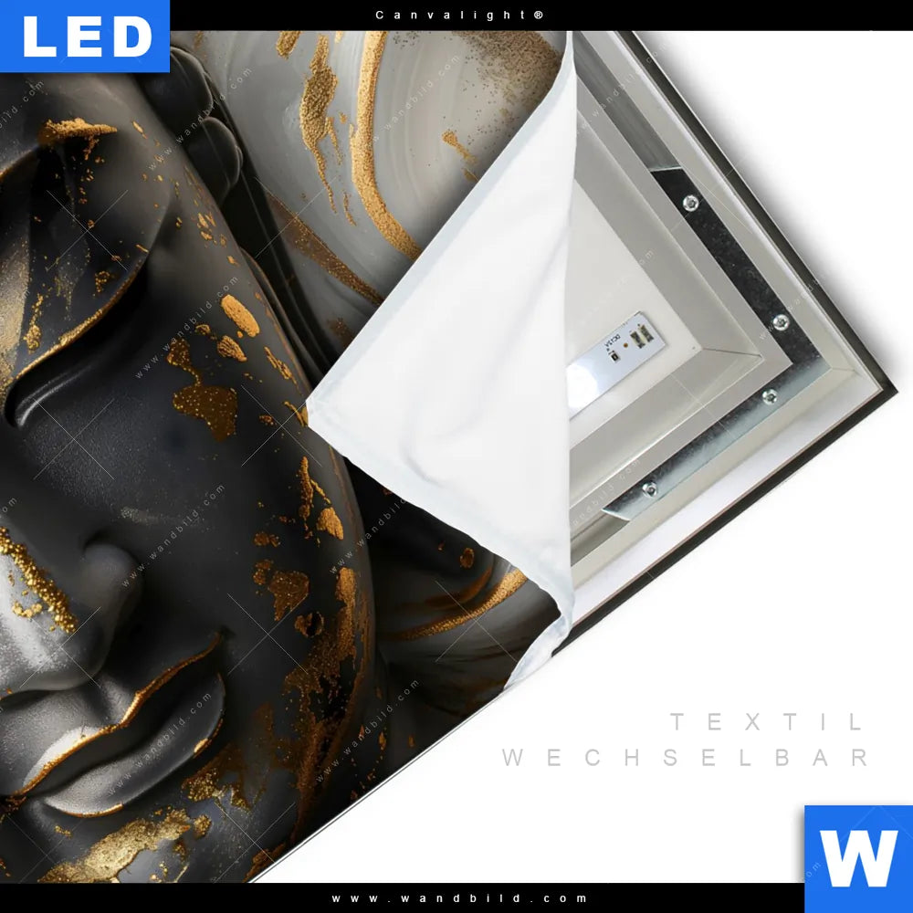 LED-Textilrahmen-Bild mit austauschbarem Buddha - Feng Shui Textil-Druck (Wechselbild)