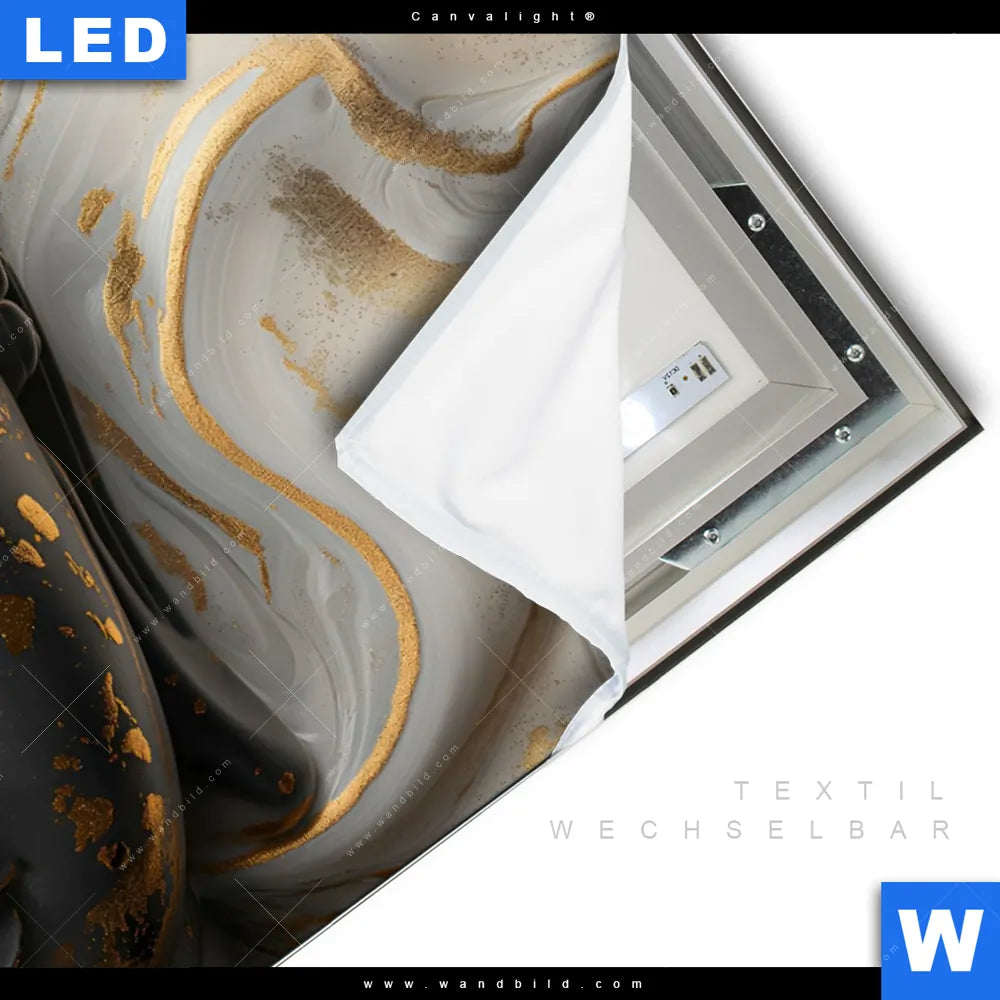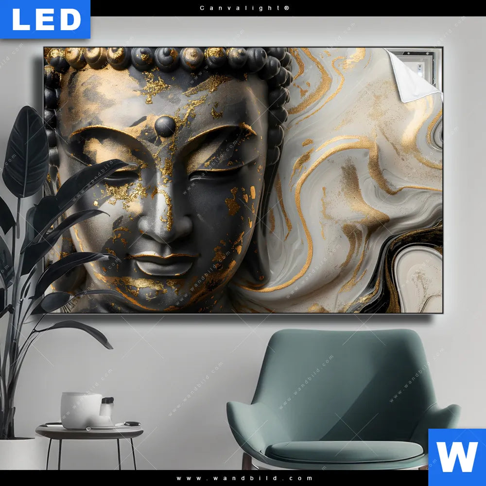 Canvalight® TEX Leuchtbild | Goldener Buddha Fluid Art | Querformat