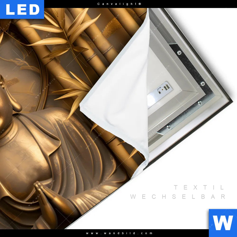 LED-Textilrahmen-Bild mit austauschbarem Buddha - Feng Shui Textil-Druck (Wechselbild)
