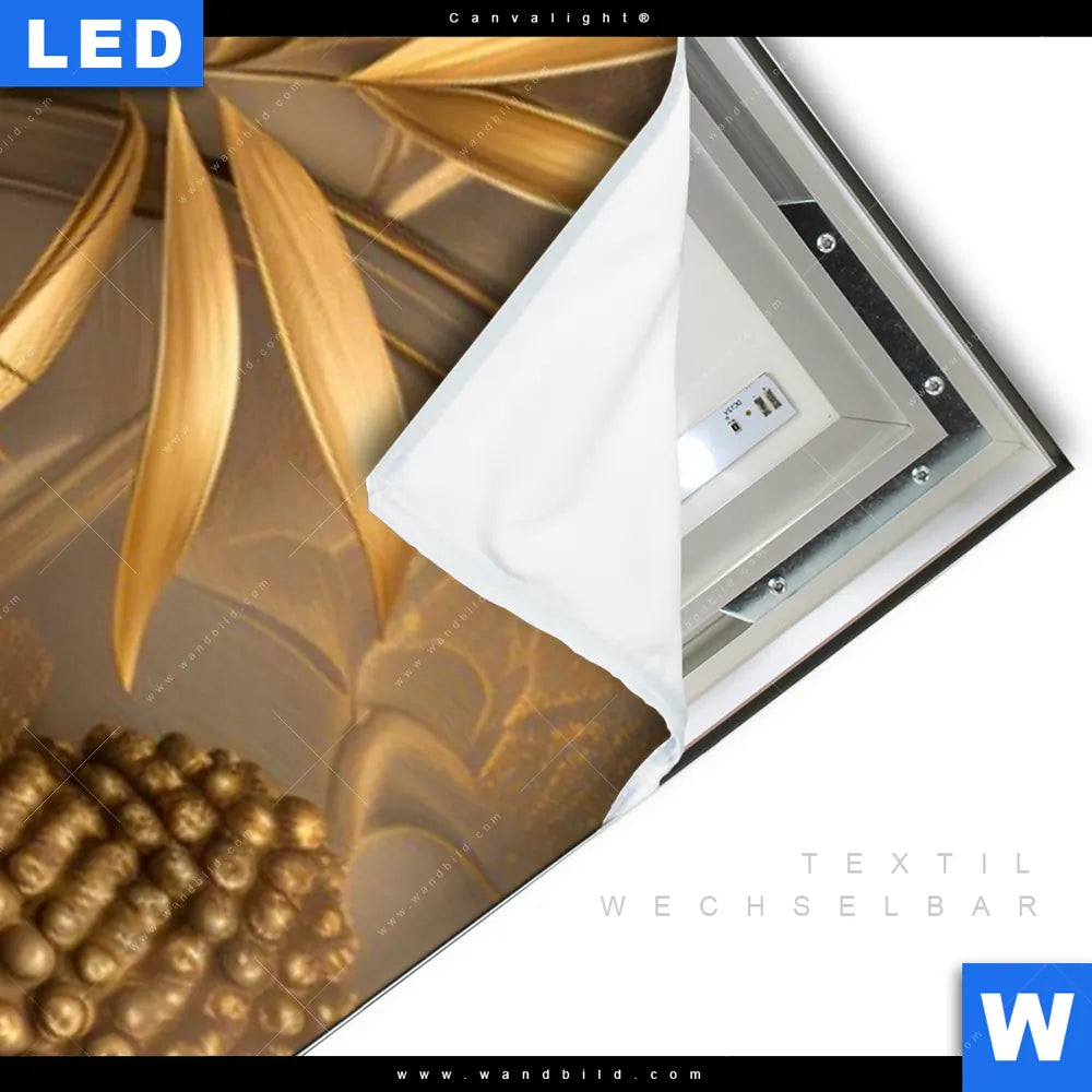 LED-Textilrahmen-Bild mit austauschbarem Buddha - Feng Shui Textil-Druck (Wechselbild)