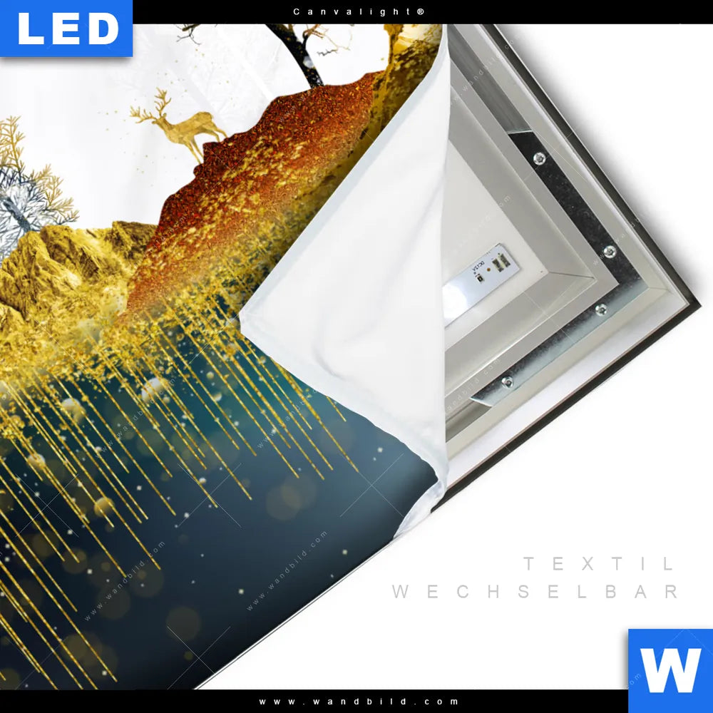 LED-Textilrahmen-Bild mit austauschbarem Landschaften Textil-Druck (Wechselbild)