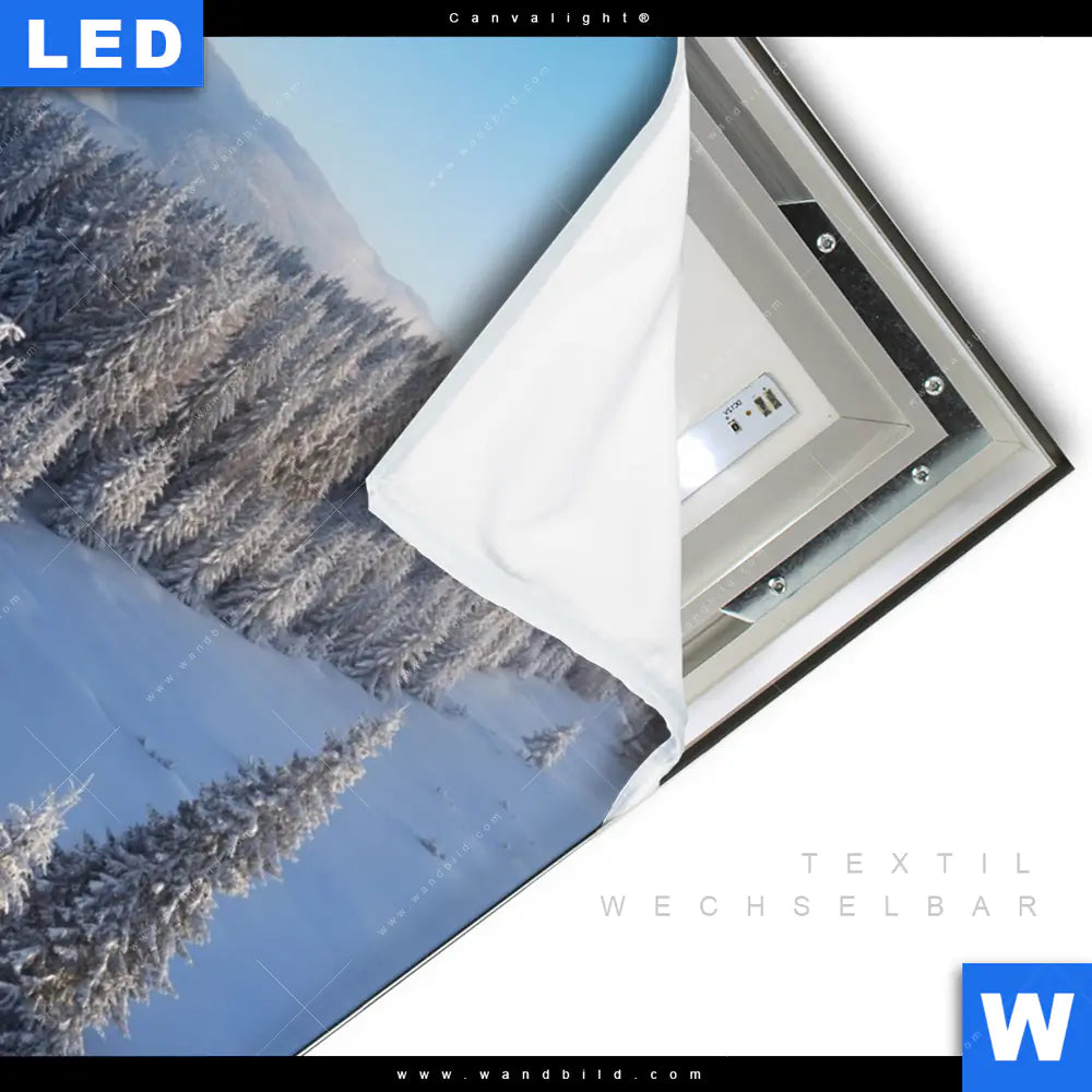 LED-Textilrahmen-Bild mit austauschbarem Landschaften, Winter Textil-Druck (Wechselbild)