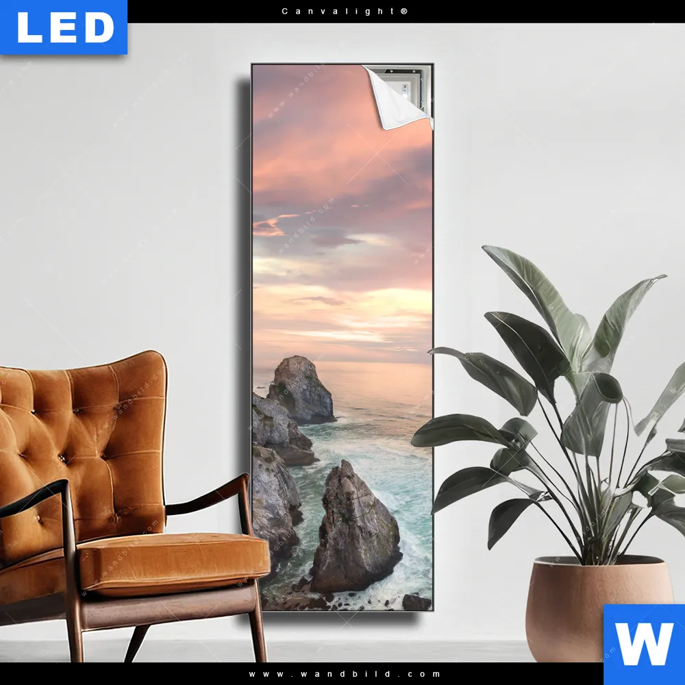 Canvalight® Leuchtbild | Felsen am Meer | Schmal