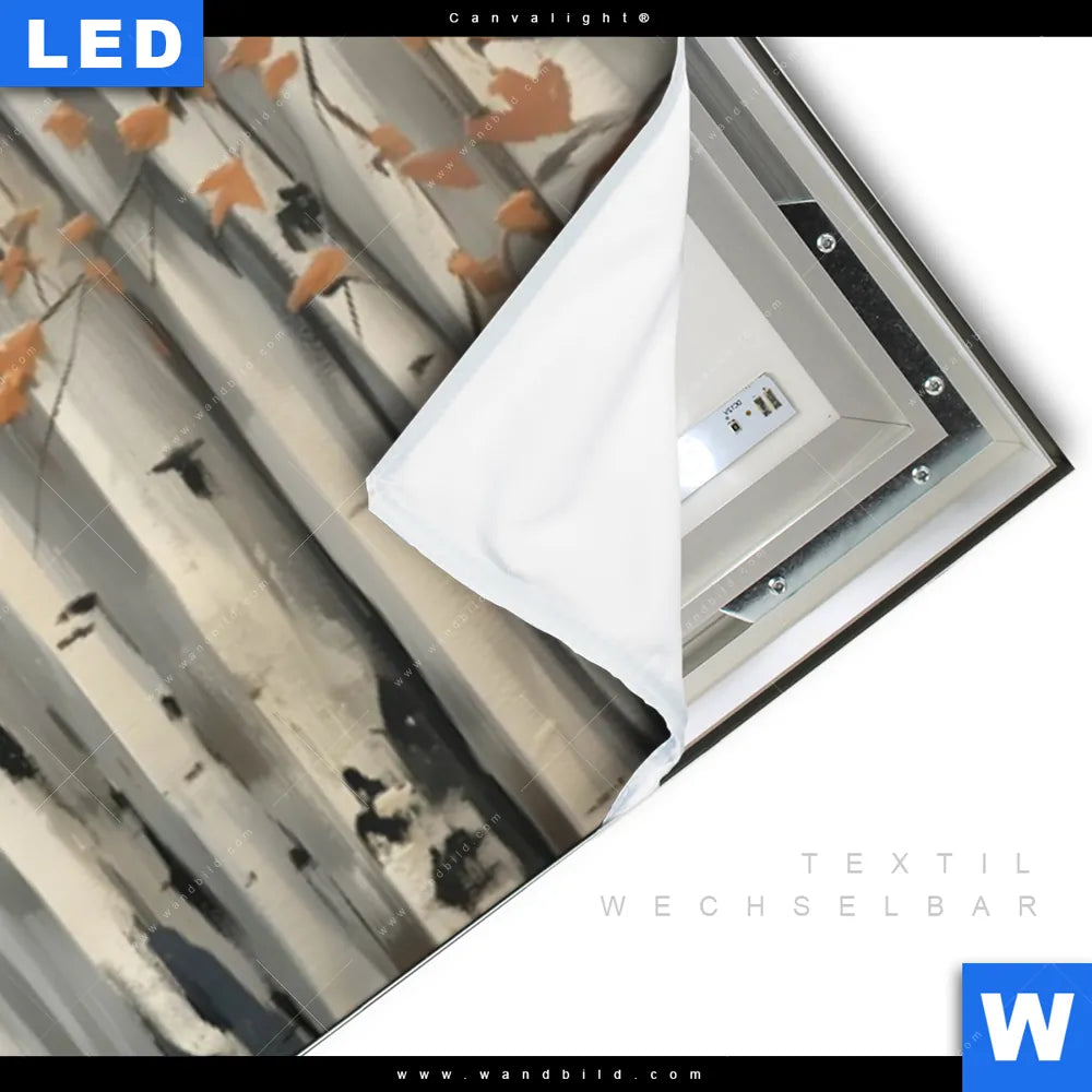 LED-Textilrahmen-Bild mit austauschbarem Tierwelt, Landschaften, Wald - Bäume Textil-Druck (Wechselbild)