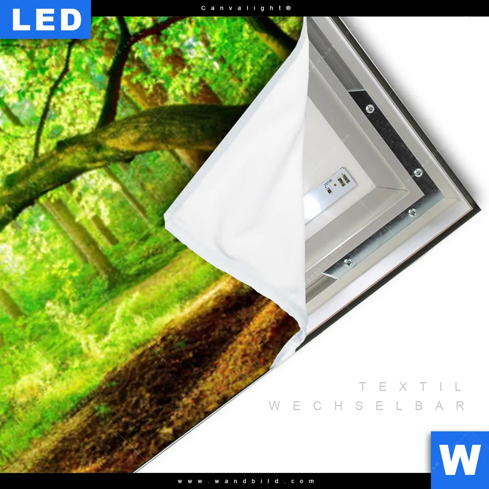 LED-Textilrahmen-Bild mit austauschbarem Landschaften, Wald - Bäume Textil-Druck (Wechselbild)