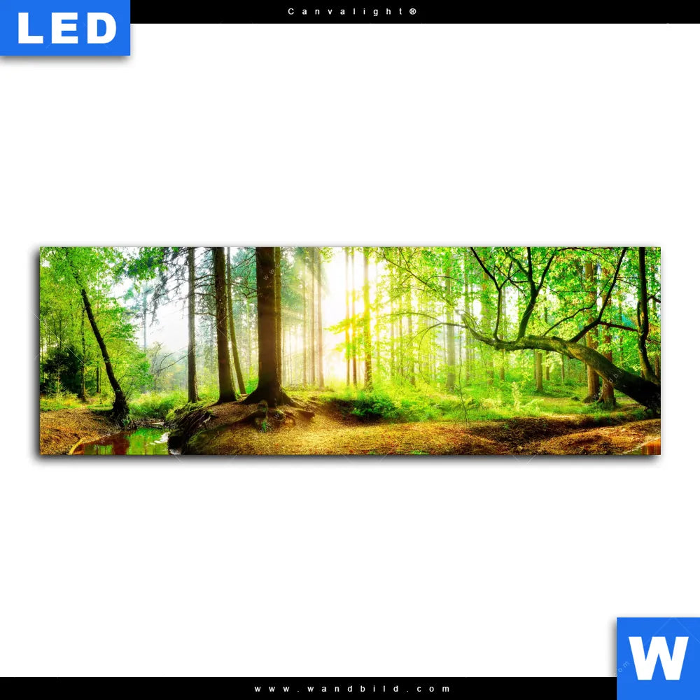 Canvalight® Leuchtbild | Idyllischer Wald bei Sonnenaufgang | Panorama