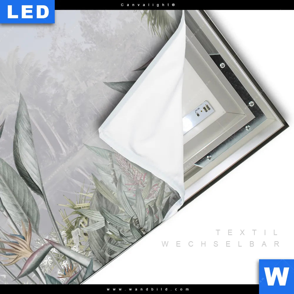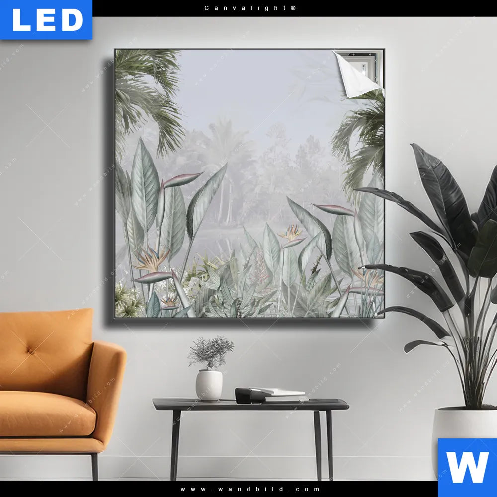 Canvalight® TEX Leuchtbild | Tropische Bäume und Blätter | Quadrat