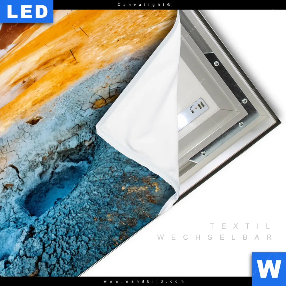 LED-Textilrahmen-Bild mit austauschbarem Landschaften Textil-Druck (Wechselbild)