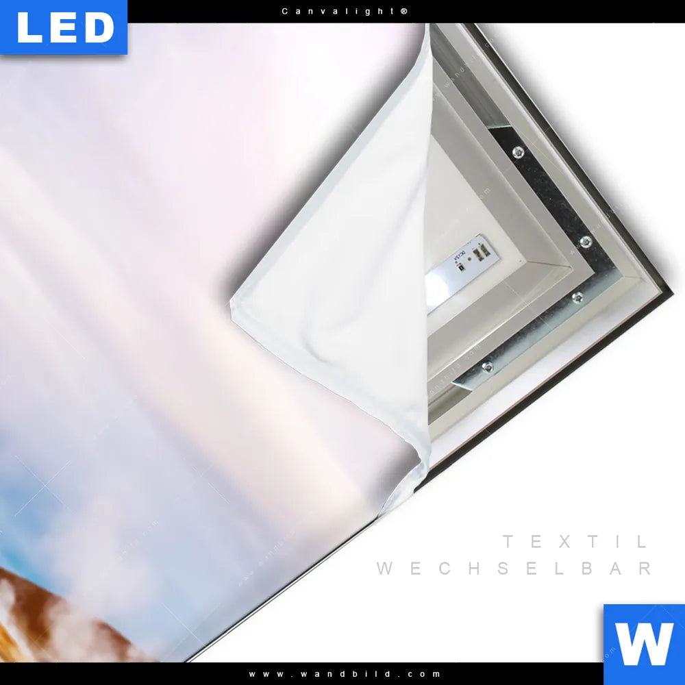 LED-Textilrahmen-Bild mit austauschbarem Landschaften Textil-Druck (Wechselbild)