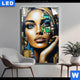 Canvalight® TEX Leuchtbild | Zoe - Mosaikgesicht im Großstadtlicht | Quadrat