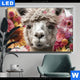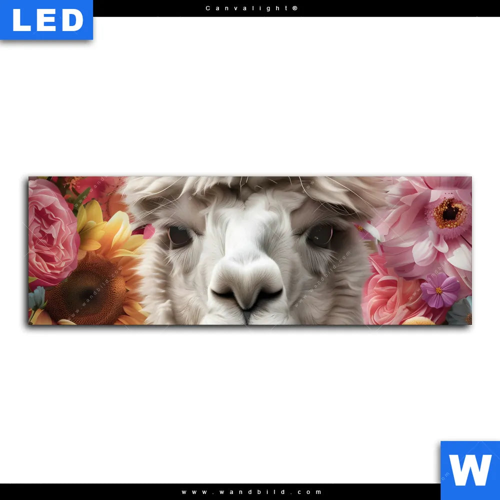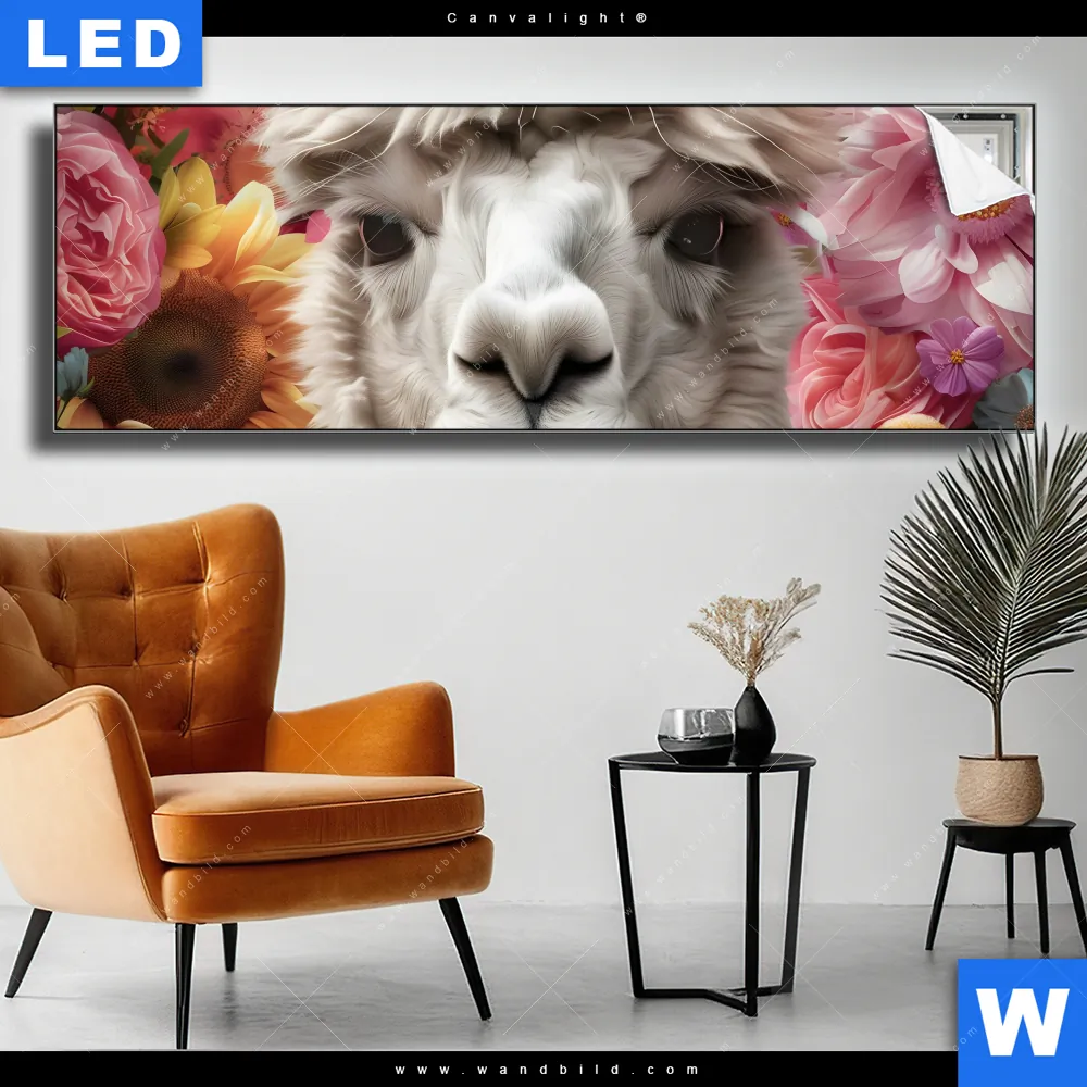 Canvalight® Leuchtbild | Alpaka mit Blumen | Panorama