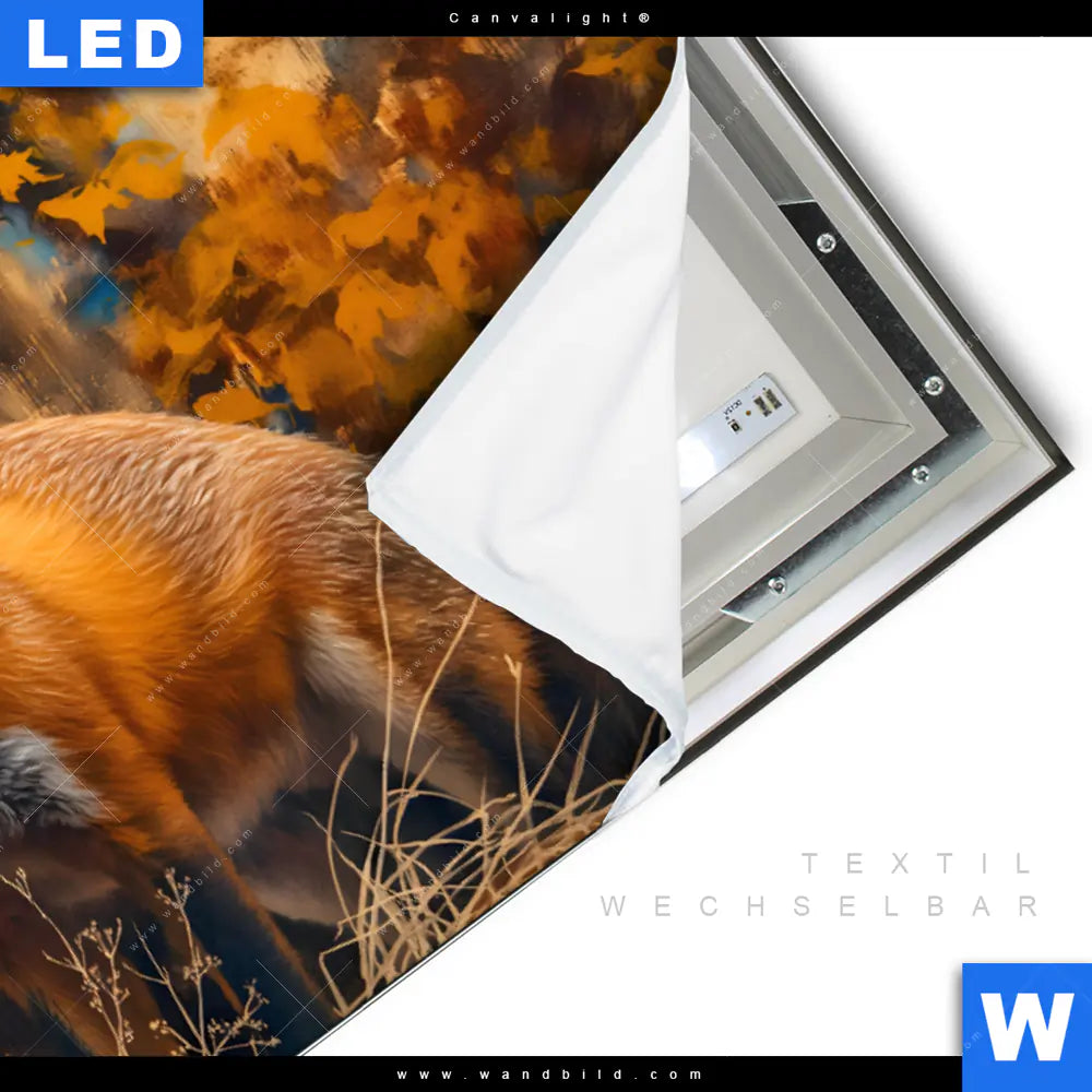 Canvalight® TEX Leuchtbild | Fuchs im Blätterwald | Querformat