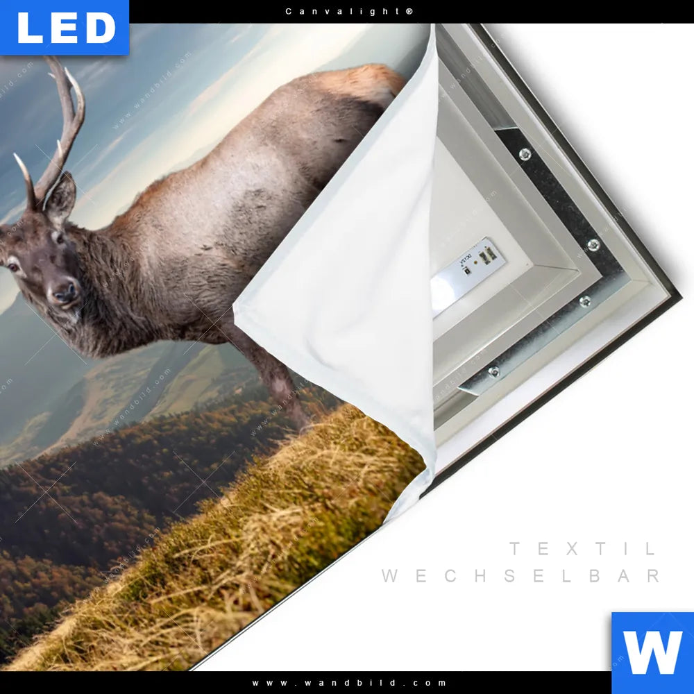 LED-Textilrahmen-Bild mit austauschbarem Landschaften, Tierwelt Textil-Druck (Wechselbild)