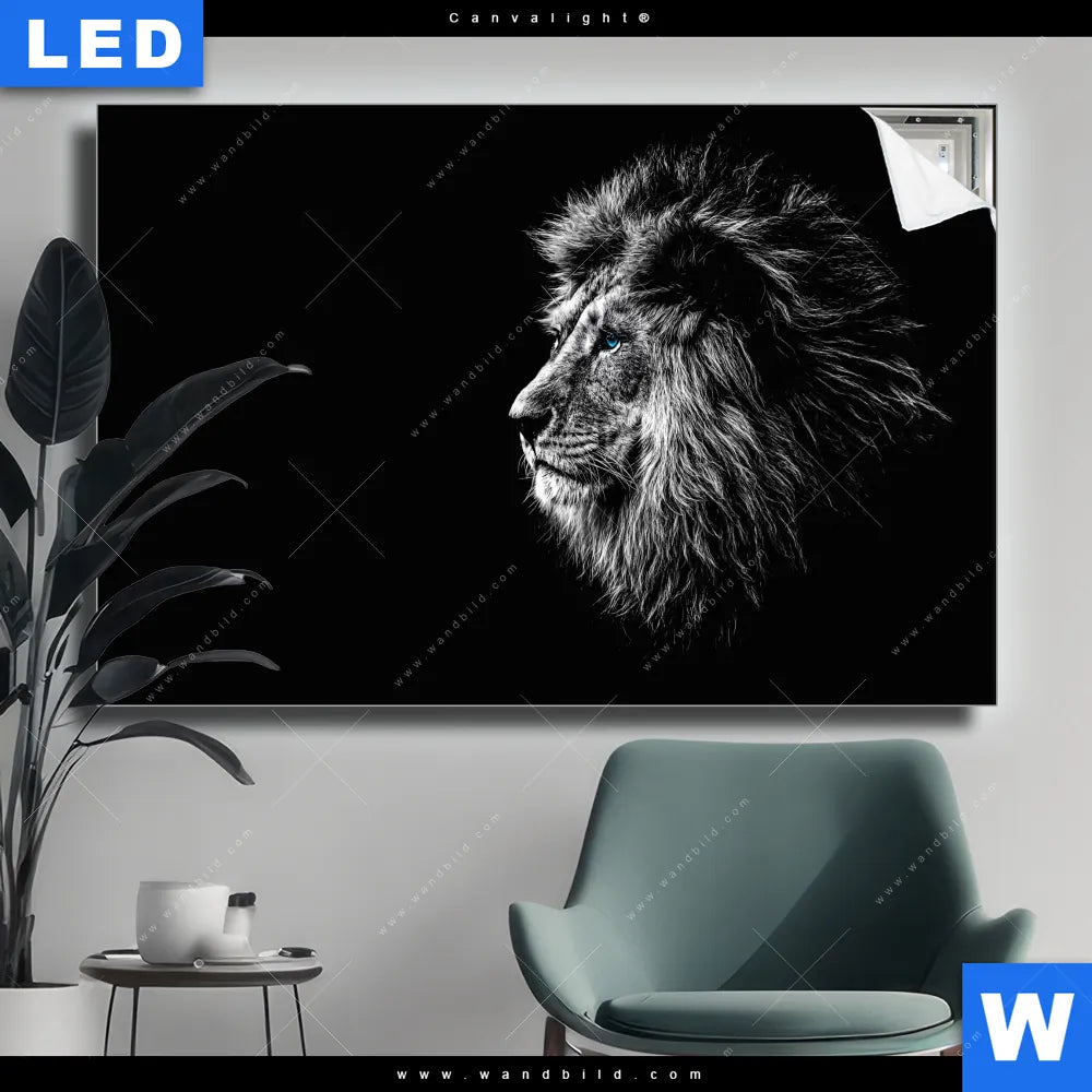 Canvalight® Leuchtbild | Löwe mit blauen Augen | Querformat
