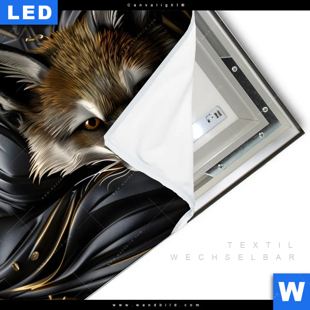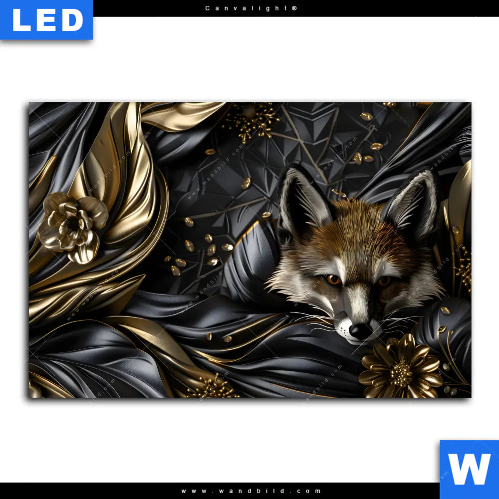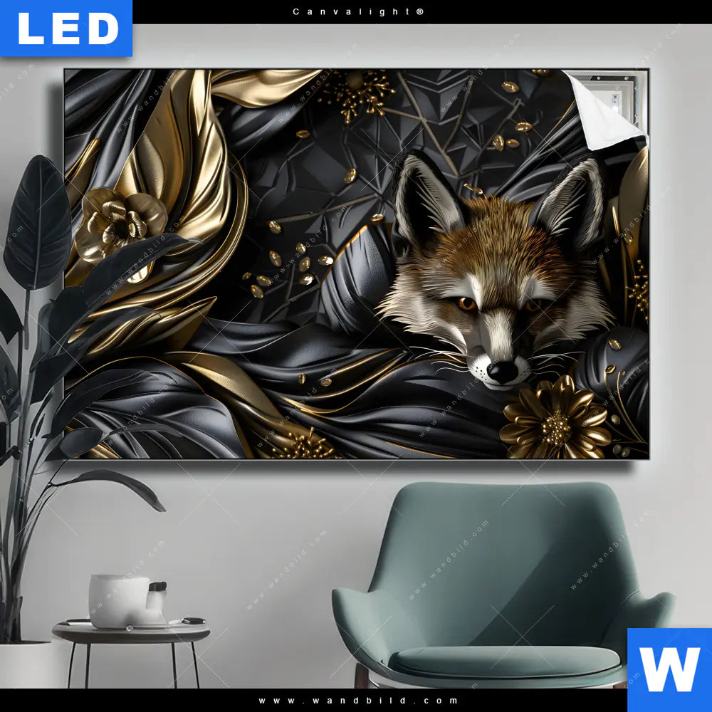 Canvalight® TEX Leuchtbild | Luxuriöser Fuchs mit Blumen | Querformat