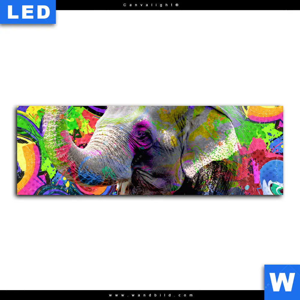 Canvalight® TEX Leuchtbild | Moderner bunter Elefant No. 2 | Panorama
