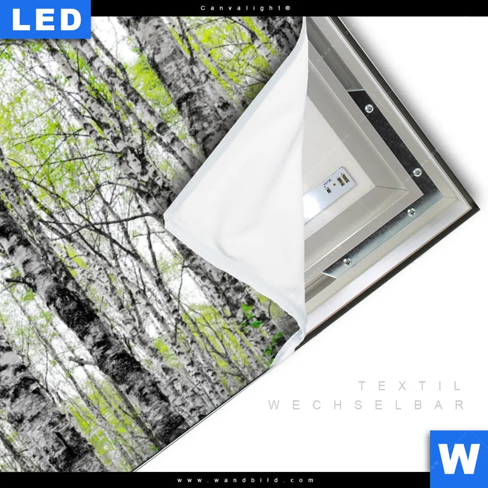 Canvalight® TEX Leuchtbild | Birkenwald | Querformat