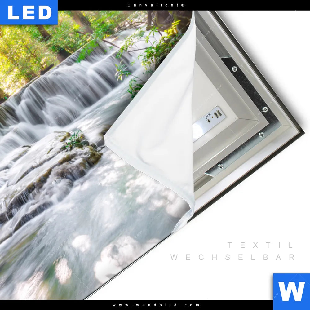 Canvalight® TEX Leuchtbild | Wald & Wasserfall No. 1 | Querformat