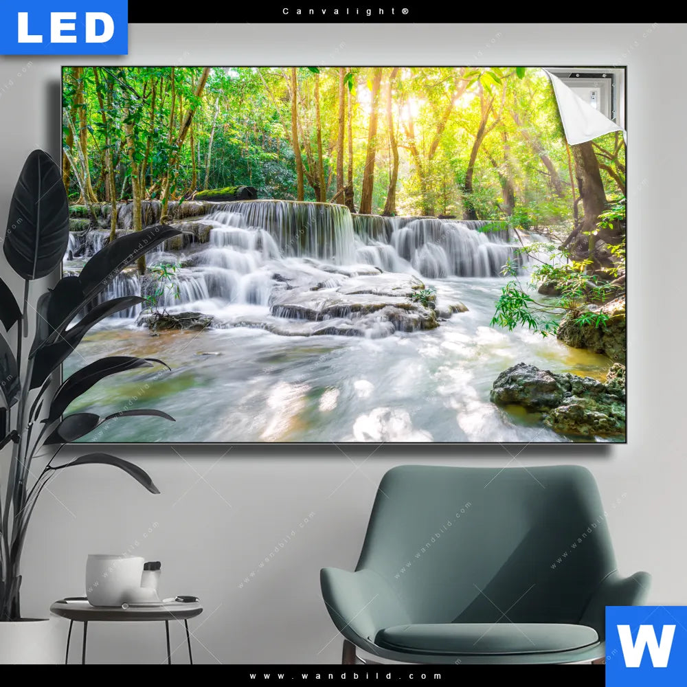 Canvalight® Leuchtbild | Wald & Wasserfall No. 1 | Querformat