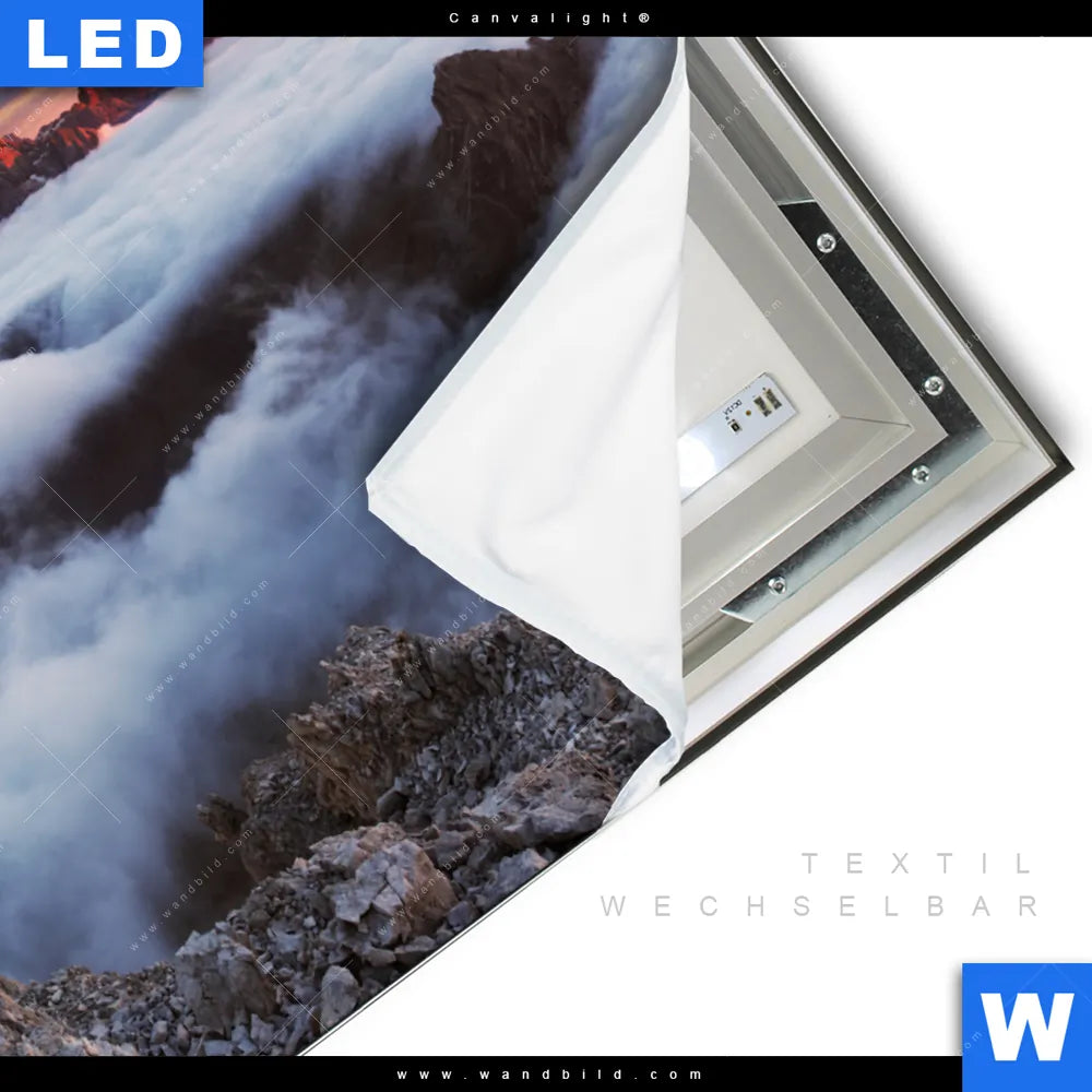 LED-Textilrahmen-Bild mit austauschbarem Landschaften Textil-Druck (Wechselbild)