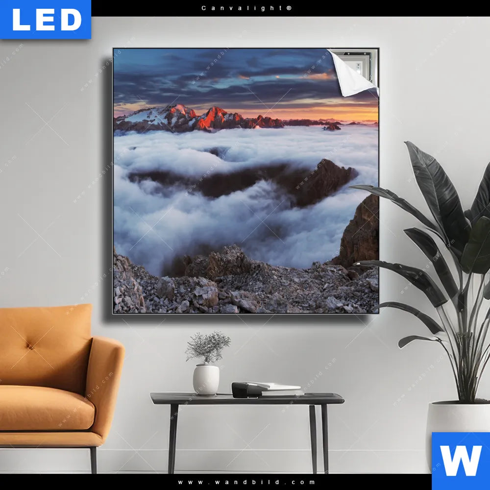 Canvalight® Leuchtbild | Alpen im Nebel | Quadrat