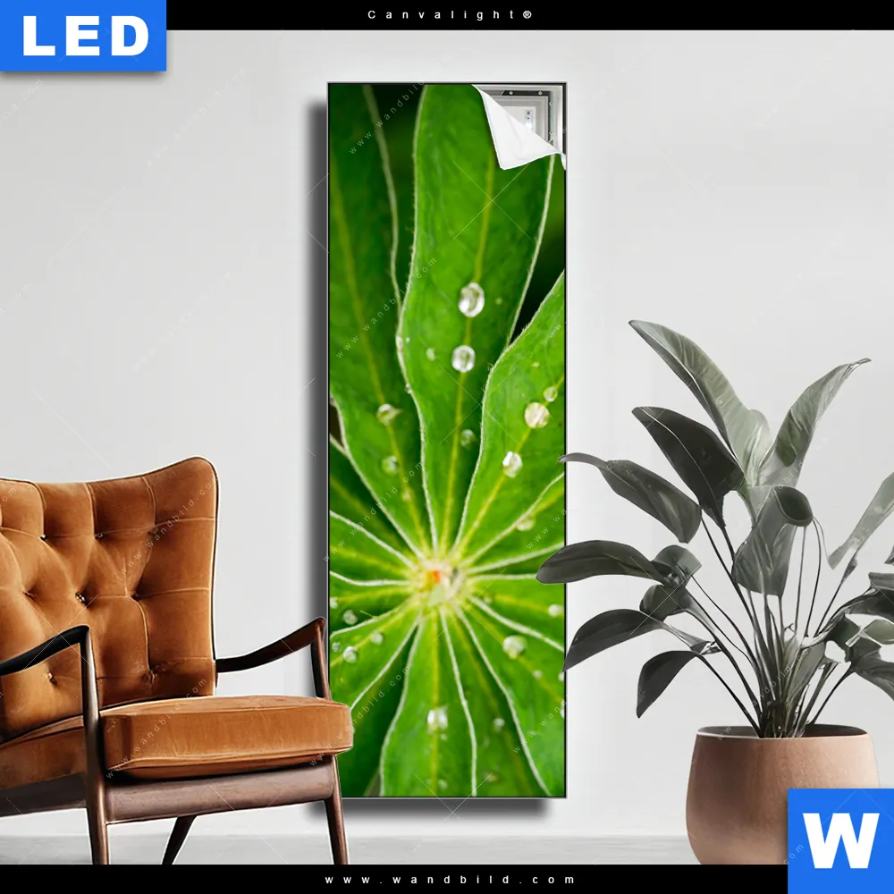 Canvalight® Leuchtbild | Blatt mit Wassertropfen | Schmal