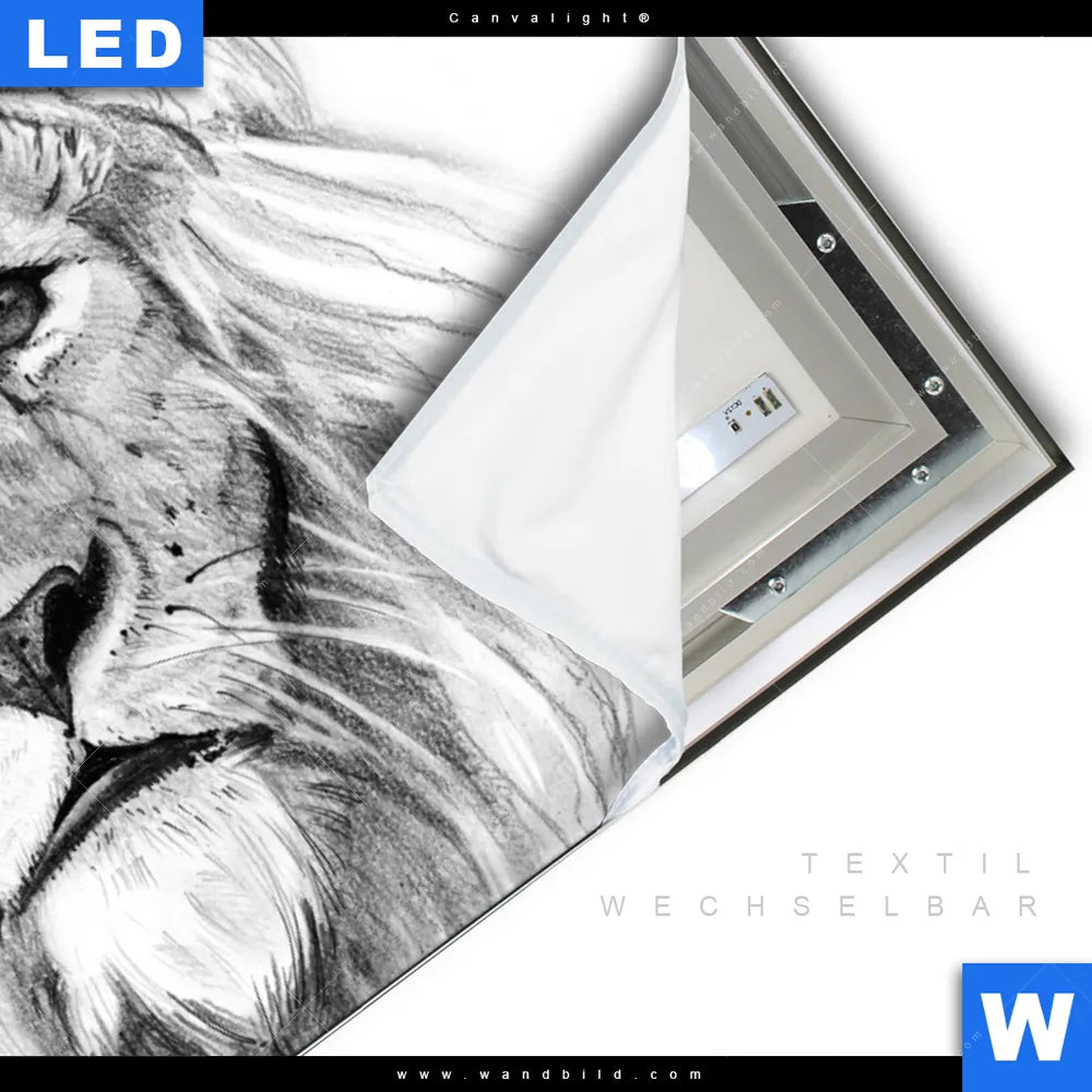 Canvalight® TEX Leuchtbild | Bleistiftzeichnung Löwe | Querformat
